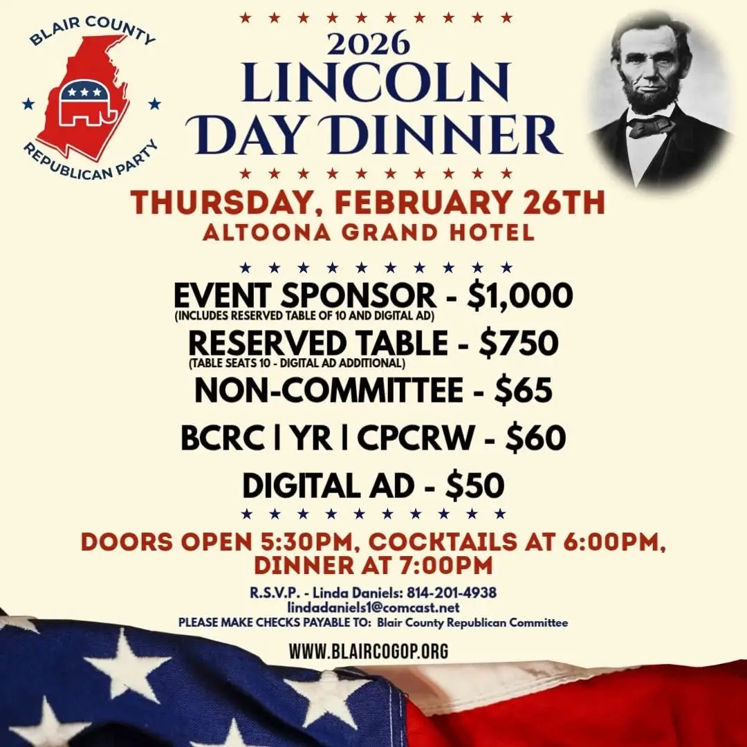 Lycoming County Republican Committee 31st Annual Lincoln Day Dinner The Genetti Hotel, Williamsport, PA5:00 PM: Social hour – Garden Room6:30 PM: Dinner – Grand Ballroom Guest speaker:Pennsylvania Attorney General Dave […]